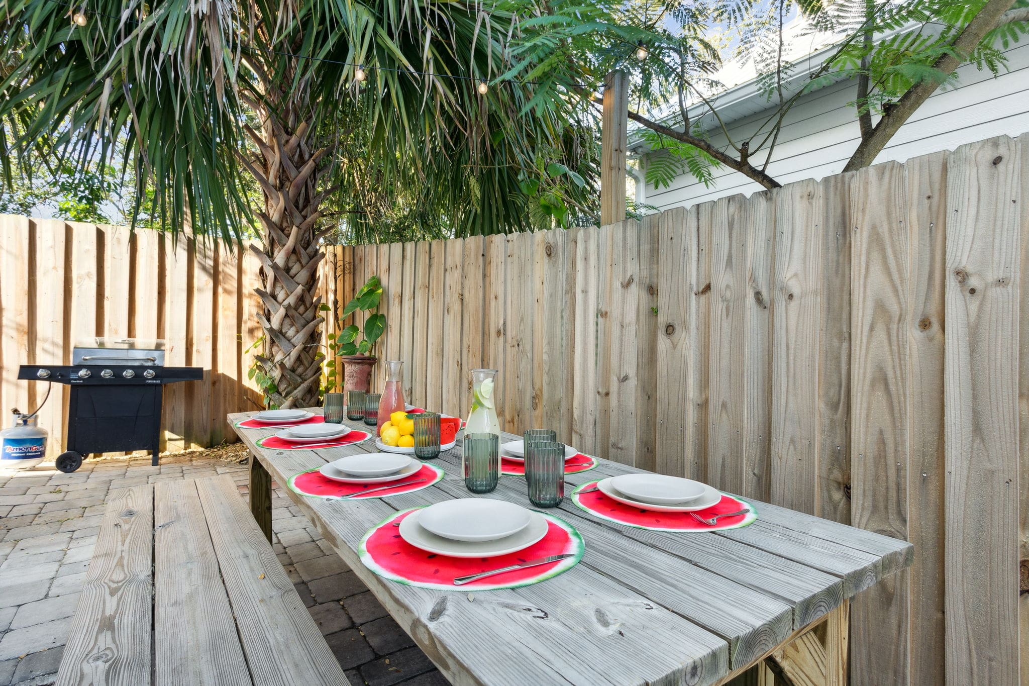 When it’s time to eat, fire up the propane BBQ and gather around the outdoor dining area for a meal al fresco. Whether it’s a laid-back lunch or dinner under the stars, this space is made for making memories with your favorite people.